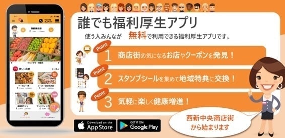 「みんなのふくり」は、商店街店舗の集客や地域住民の健康増進をサポートするアプリで、以下2点の特徴があります。