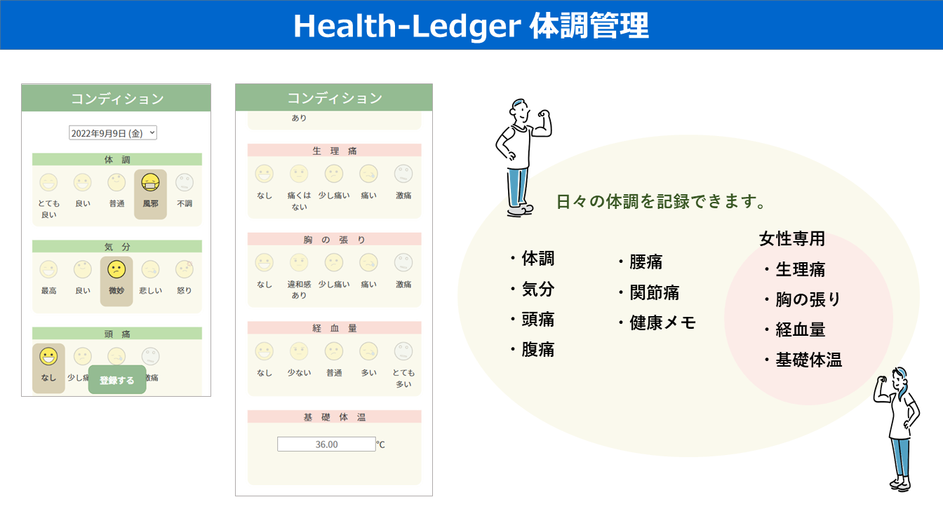 従業員の体調を記録する機能を追加しました。記録できる項目は以下になります。