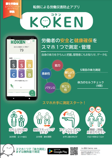 転倒による労働災害アプリ【KOKEN】リリース開始